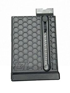 Built for competition. Injection-molded reinforced polymer body with Billet Aluminum base plate and latch. Adjustable for feed height and mag well fitment to eliminate tilt-induced misfeeds.