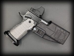 *** Please Note *** This Holster will not work with any of our DS Series Pistols that have Iron Sights. This holster is specifically designed for our Limited Optics Competition Pistols. This holster will work with both the MPA Slide Stop Thumb Rest, and MPA Frame Mounted Thumb Rest (this holster will not accommodate the frame mounted Thumb Rest in the most forward position).